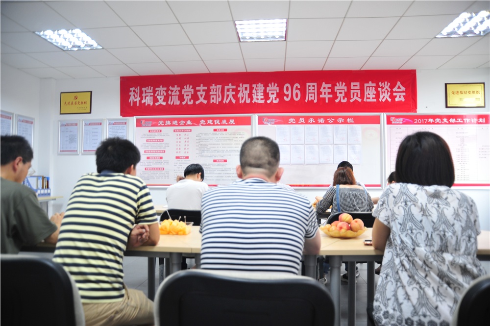 2017年6月30日下午,公司黨支部在四樓會議室召開了“慶祝中國共產黨建黨96周年黨員座談會”,會議由公司黨支部書記兼副總經理張富良同志主持。會議伊始,全體黨員莊嚴的舉起右手重溫了入黨誓詞,然后大家就新時期如何立足自身本職工作,做一名合格黨員進行了座談發言。通過這次座談會,進一步加強了公司黨支部的凝聚力,進一步增強了各位黨員的黨性,黨員同志紛紛表示在今后的工作中將以更加飽滿的工作熱情,更高標準嚴格要求自己,全身心的投入工作,為科瑞美好的明天而努力奮斗。
