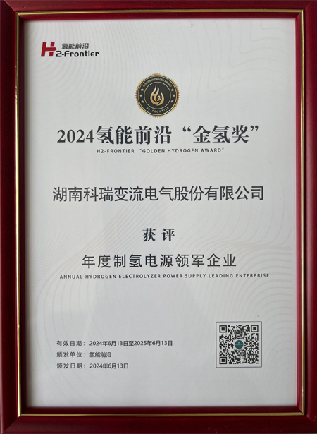 湖南科瑞變流電氣股份有限公司憑借高效可靠的產品與技術、卓越的品牌影響力榮獲“年度制氫電源領軍企業”稱號。未來,科瑞變流將持續深耕于綠電制氫領域,推動產品技術升級,發揮行業引領示范作用,為客戶提供更優質的產品和服務,助力全球綠色能源轉型。
