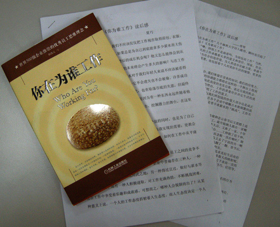 此次讀書月活動的指定書目為世界500強企業推薦書目《你在為誰工作》一書,公司全體員工積極參與、認真研讀,立足本職工作寫出了一大批具有真情實感的心得文章。活動共收到征文99份。經評委會嚴格審定,評出了一、二、三等獎,公司對獲獎者給予了表彰和獎勵。