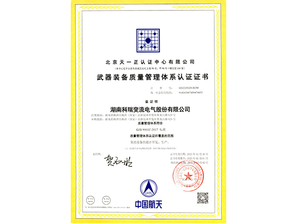 國軍標(biāo)質(zhì)量管理體系認(rèn)證證書